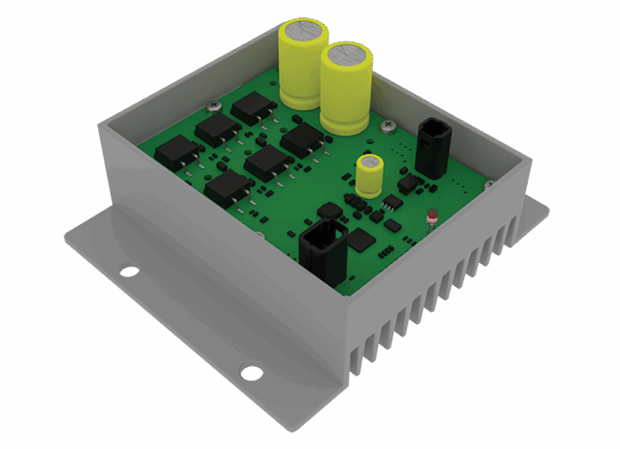 All of the controllers and PCBA integrated software are designed and validated in-house at Actuator. They operate between 5V and 72V, and can drive motors from just a few watts up to 6kW electric.